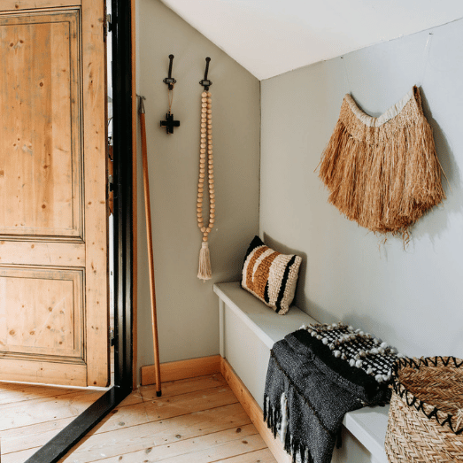Je komt binnen door de rode deur aan de voorzijde van het pand. Het halletje leidt naar je eigen keuken met brocante tafel en oude schoolstoeltjes vanwaar je uitkijkt op de binnentuin.