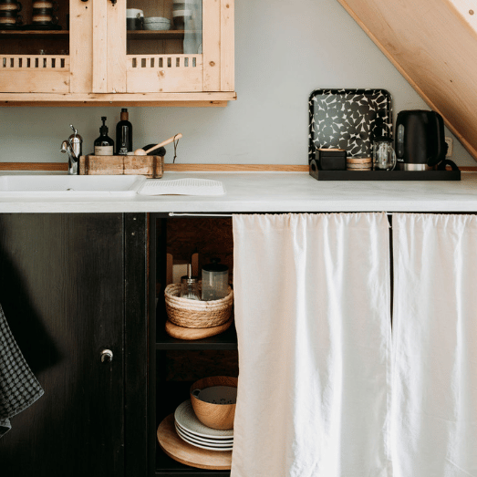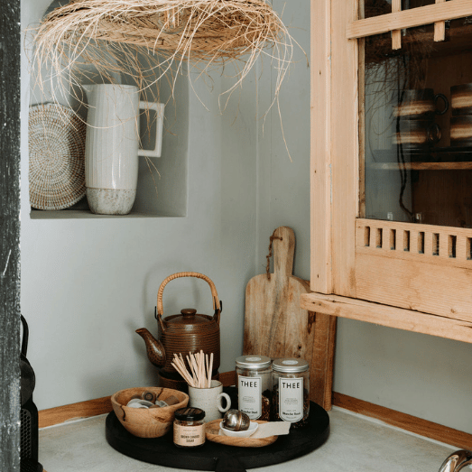 De kitchenette beschikt over alle voorzieningen die je je maar kunt wensen. Een koelkast, een Nespresso machine, een waterkoker en diverse theesoorten, mooi servies, kortom een fijne plek om je dag goed te beginnen. Er zijn genoeg leuke eetadresjes in de buurt, maar blijf je wat langer en wil je eens een avondje ’thuis’ eten, dan kun je in de combimagnetron een kleine maaltijd bereiden of wat opwarmen.